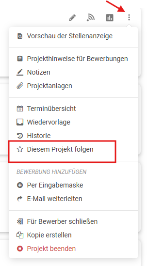Ab sofort können nicht nur Projektleiter oder Ersteller den Status ihrer Projekte im Blick behalten – alle Nutzer mit entsprechenden Sichtrechten haben nun die Möglichkeit, gezielt Projekten (z. B. Stellenanzeigen) zu folgen.